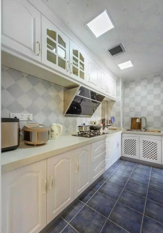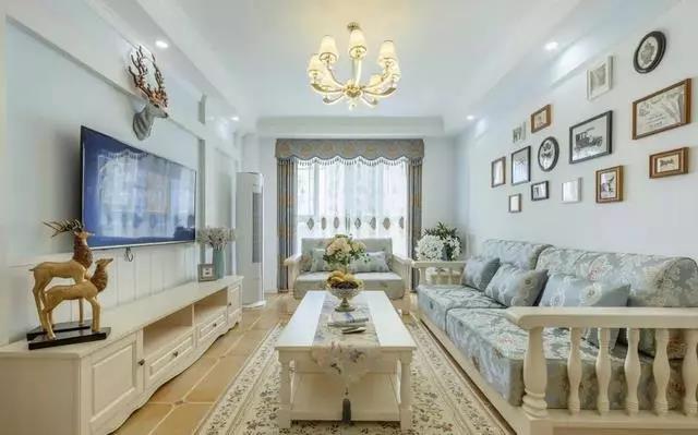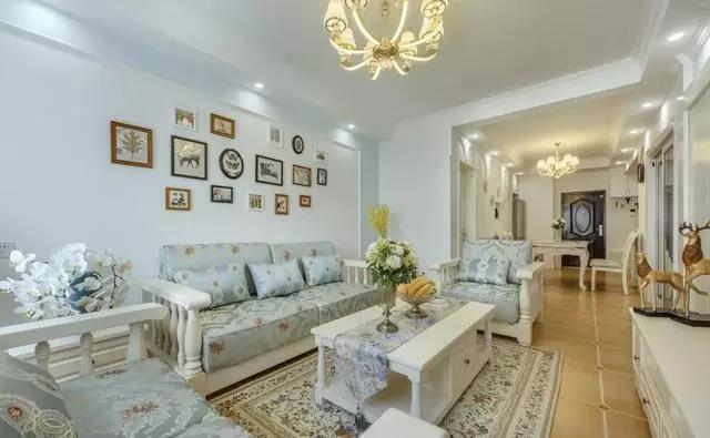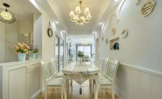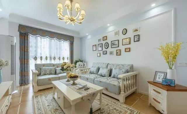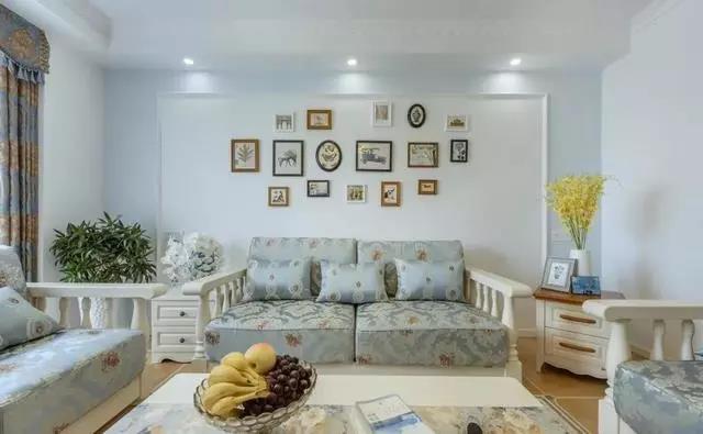 家中整个色调为浅蓝与白色的搭配,最后加上零碎的碎花来减少空间的单调感,缤纷不失简约,灿烂而无杂乱感。